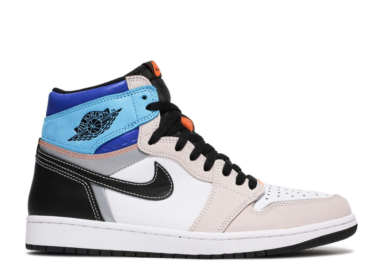 The ‘Prototype’ colorway of this Air Jordan 1 Retro High OG features a mix of vibrant colors, including bright red, royal blue, and neon green, creating a bold and dynamic look. The premium leather upper is accented with patent leather overlays, adding a touch of luxury to the design. The iconic Air Jordan wings logo is prominently displayed on the ankle collar, showcasing the sneaker’s heritage.